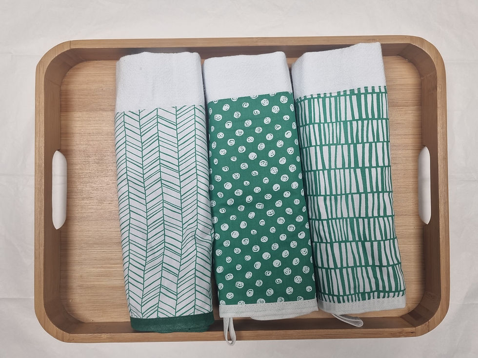 Trio de panos de prato branco e verde musgo